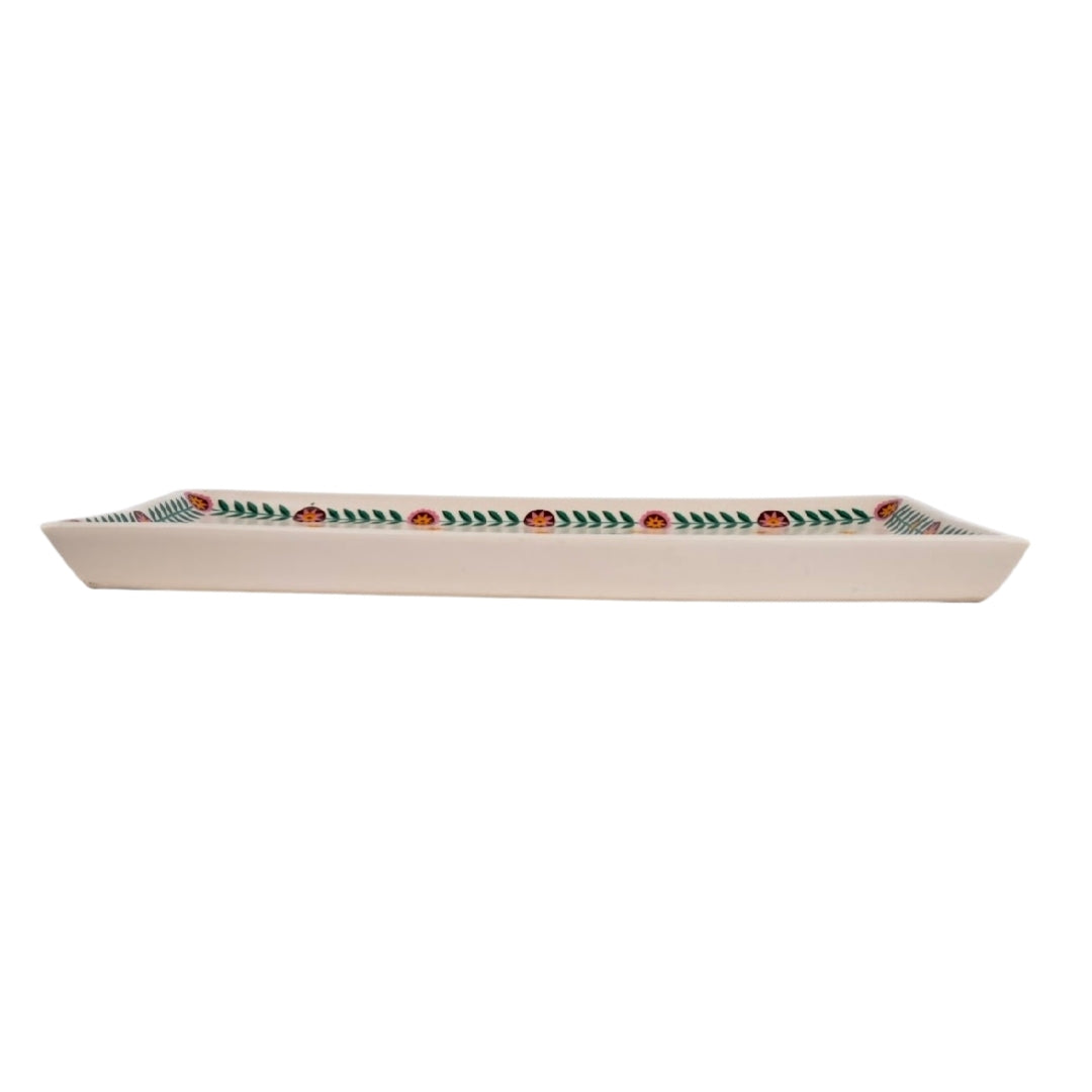 Handcrafted with vibrant patterns set against a soft ivory base, this rectangular tray is both pratical and stylish. Its flat surface is perfect for serving beverages snacks or desserts. It doubles up as a decorative piecefor organizing counters or coffee tables